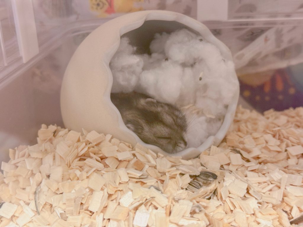お腹いっぱいになったまめくんがすやすや眠っている姿、癒しです🐹