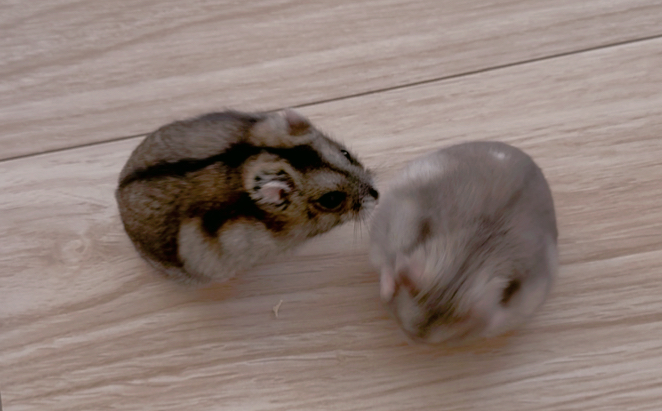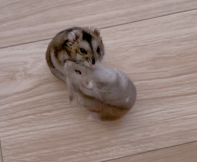 噛み付くのではなく、優しく叩くのがかわいいです🐹🐹❤️